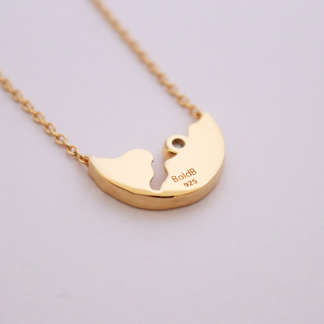 The pendant measures 20mm/ 0.8’’ in height and 13mm/ 0.5’’ width and rests on a 40cm/ 15.7’’ long delicate cable link chain featuring small metal balls and a 5cm/ 2’’ chain extender.