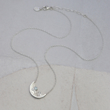 The pendant measures 20mm/ 0.8’’ in height and 13mm/ 0.5’’ width and rests on a 40cm/ 15.7’’ long delicate cable link chain featuring small metal balls and a 5cm/ 2’’ chain extender.