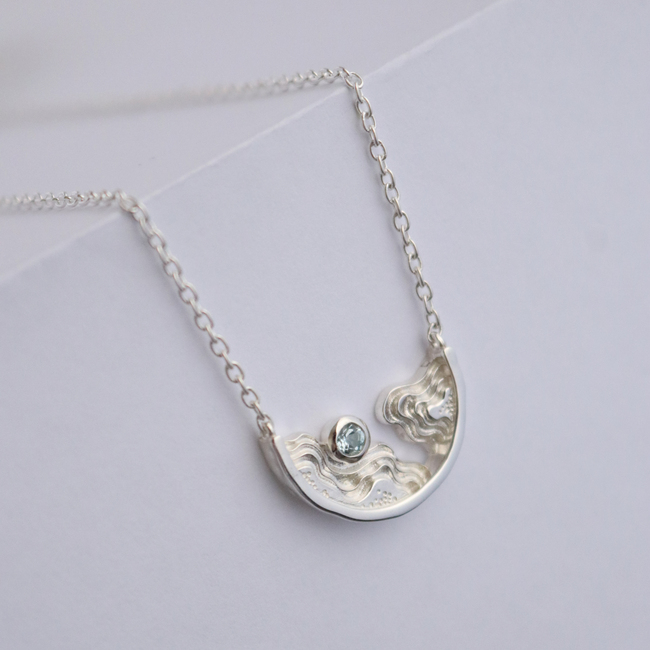 The Serenity Collection draws inspiration from the serene beauty of the ocean and its shores. Our Paradise necklace has been carefully crafted by Balinese silversmiths from environmentally friendly recycled 925 sterling silver. The design features a beautiful light blue Topaz gemstone, evoking the shimmering essence of water.